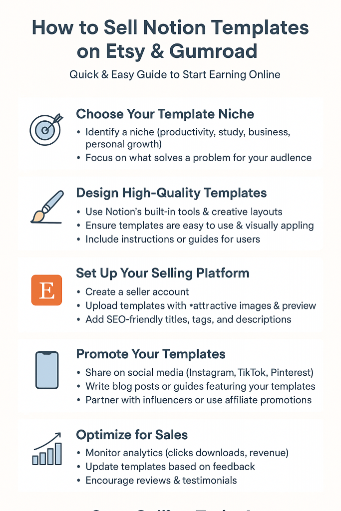 1. Finding a Niche That Works: Successful sellers focus on niches like productivity, student dashboards, finance trackers, or startup management systems. By solving specific problems for specific audiences, you can create demand that cut through the noise.