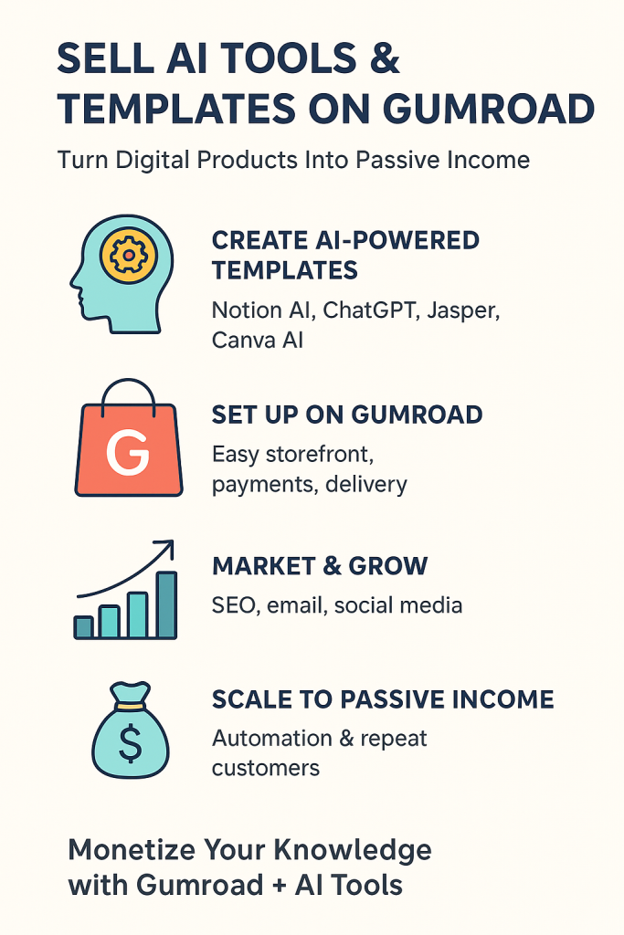 Platforms like Gumroad, Sellfy, and Teachable AI are making it possible for creators to package ideas into digital products and earn passive income online. In the AI economy, selling AI tools and templates has become not just a side hustle but a full-time business for thousands of creators.