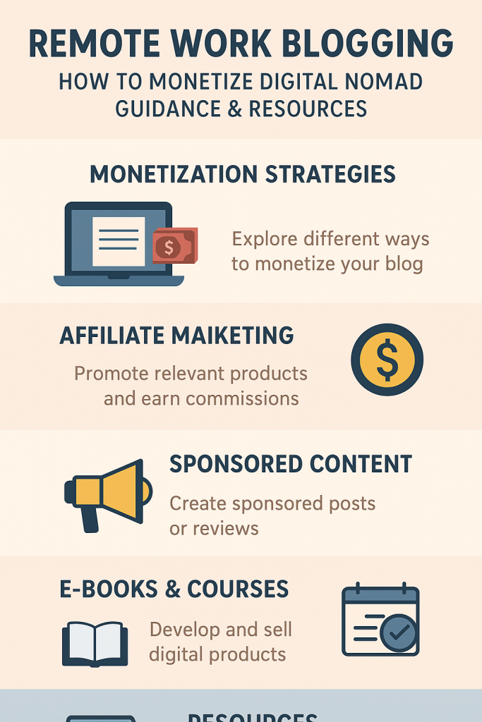 Traffic is valuable, but monetization comes from products and services. Remote work bloggers can package their expertise into guides, checklists, templates, or even online courses. For example, a blog post on “How to Stay Productive in Different Time Zones” can expand into a paid course on building a productivity system while traveling.