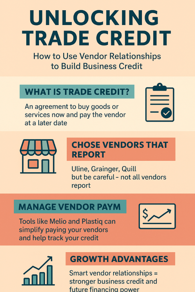 When business owners think about credit, they often jump straight to banks, credit cards, or loans. But one of the most overlooked and powerful tools for building a strong business credit profile is trade credit. By working strategically with vendors and suppliers that extend net-30 or net-60 terms and, more importantly, report payment history to business credit bureaus, you can establish and grow your company’s creditworthiness faster than through many traditional avenues.