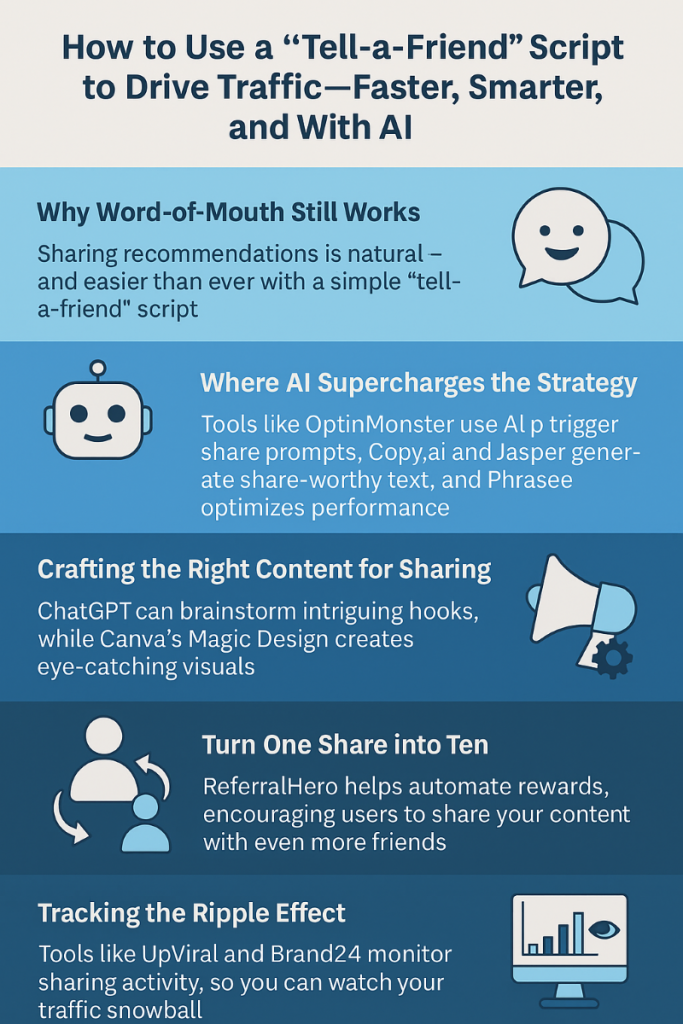 What makes viral marketing effective is the human instinct to share. What makes it scalable is the technology that makes sharing easy, rewarding, and measurable. Tell-a-Friend scripts, when modernized and paired with AI tools, bring those two elements together beautifully.